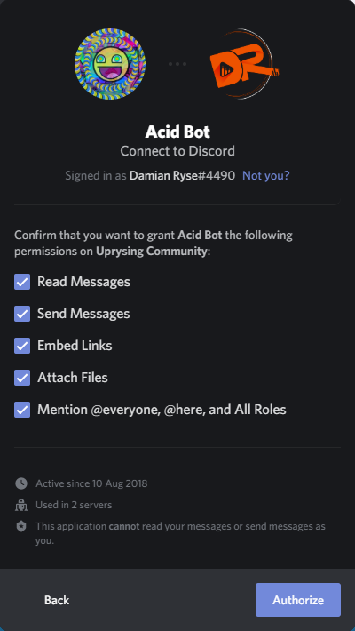 - Confirm the permissions for Acid Bot and click the „Authorize“ button.